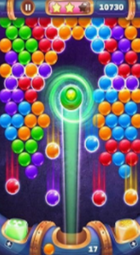 3、在相同颜色的行中弹出3个或更多个气泡以使它们爆炸。