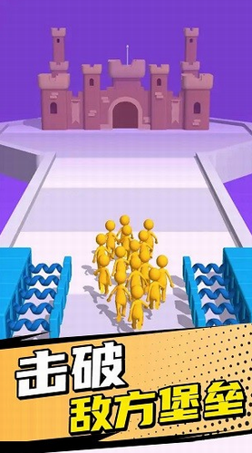 1、加入人群中,开始城市竞赛,战斗并到达城堡,让我们一起在游戏中不断的奔跑,在途中不断地聚集人,收集人群。