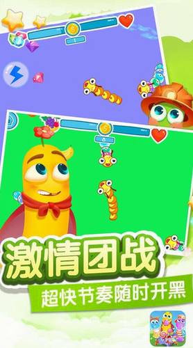 1、它是一款休闲好玩的竞技闯关游戏,贪吃虫虫爱糖果游戏画风可爱,有着许多的可爱虫子。