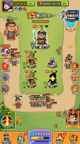 3、武将养成:数十强力武将精心养成,上千种组合搭配专属的阵容。