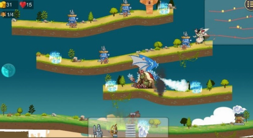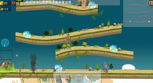 2、怪物分为地面怪物和飞行怪物,当兵塔产生的随从派往其他地方进行战斗或空袭,用来躲避怪物的攻击。