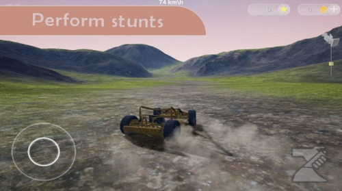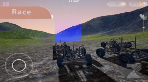 2、玩家将会驾驶一辆山地车不断向前,前方弯曲不平的道路等你来挑战,你需要平稳地驾驶你的赛车进行各种狂欢,挑战地心引力完成各种特技。