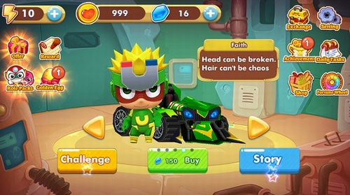 3、 Mecha转变为参加赛车冒险。卡通形状和图像质量效果给汽车带来了另一种激情。
