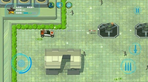 1、玩法介绍:游戏中玩家开着一辆吉普车与敌人作战,解救被关押在敌方战线的战友。