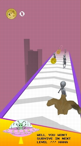 狗狗币冲冲冲安卓版是一款非常休闲的趣味跑酷游戏,游戏中玩家需要帮助狗狗来到达月球,一路上会碰到非常多的外星人,我们的狗狗币想要飞上月球,所以我们必须帮他避开在赛道中的外星人,否则狗狗被抓到就会导致游戏的失败了!开始的时候你的速度不是很快,越到后面你的速度也就越快,这时候一定要注意力集中,然就会被突然出现的外星人给抓去,你还在等什么呢,快点来下载玩玩吧!