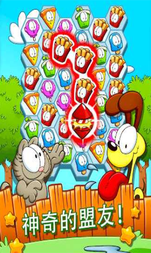 2.经典角色登场,加菲猫的小伙伴欧迪、乔恩登场,一起完成消除,获得美食