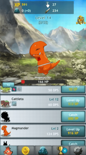 1、这些点击的屏幕的伤害还有精灵的自动的伤害将怪物消灭掉。
