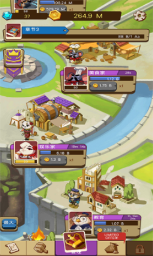 闲置的国王无限金币版是一款建造经营类的游戏。玩家在游戏中成为一名君主,你需要打造自己的王国,让废墟中的王国重现往日辉煌,通过管理王国,去创造更多的财富,不断提升自己的王国实力来强化自己的战力,建造不同的建筑来提升自己的国家实力,你的国家越强大对你的帮助越大,只有自己的王国强才能打败更多的敌人。多样化的游戏发展渠道也是能够让玩家们自己感受无限制的游戏精彩。你需要建造和制定各种策略让你的国家更加的壮大和富强,喜欢的朋友赶紧选择下载吧。