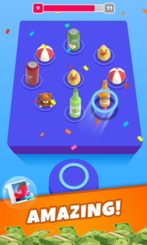 幸运投掷3D中文版是一款休闲的投掷游戏。海量的游戏关卡,玩家需要控制小圈精准的套中物品,你想要的有价值的商品,考验玩家的控制能力,感受套中名贵物品的刺激感,瞄准将你的圆圈投掷到你所想要获得的物品上面,操作简单容易上手,和套圈玩法差不多,能够刚好的套上就算是完成,会有相应的积分,只有把握好角度和方向就能够轻松地投掷,各种丰富的奖品都在这里等着玩家们来投掷,多种多样的玩法等你来发掘,多种多样的商铺和物品等你来套取,简单的画风更是让玩家的视觉不再疲惫,如果感兴趣的话就快来下载这款游戏吧。