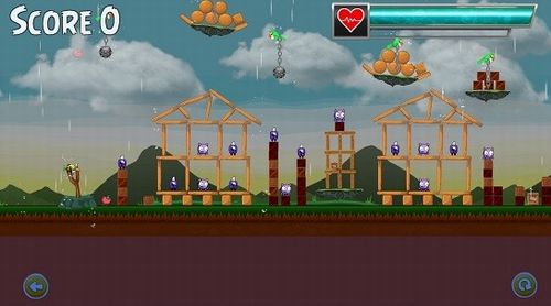 3、将小鸟放在弹弓上,挑战射击角度和触发机制的力量,一举歼灭所有怪物。