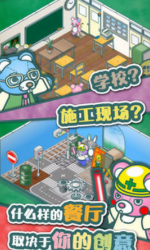 2.你可以和可爱的玩偶们一起来建设店铺,内饰可以随心来进行设计。