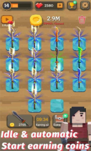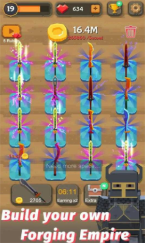 合并宝剑无限金币版是一款非常不错的合成游戏。在这里你将要学会的不是击剑而是锻造宝剑,你将要从简单的木剑开始进行锻造,虽然木剑实际上不需要锻造,一步步将这些剑锻造升级变成强大的大宝剑,你将在这里通过合成宝剑的方式完成游戏内的指定任务,游戏操作也非常简单易上手,在限定的时间内完成闯关还有额外奖励领取,同时游戏也非常考验玩家的手速,你也可以使用闯关获取的金币解锁更多趣味玩法模式,喜欢的小伙伴赶紧下载挑战吧。