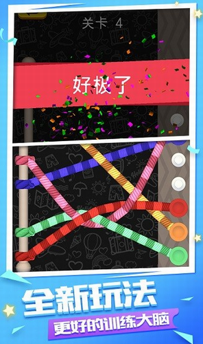 1、尽全力解开所有的结吧,游戏玩法很简单,但是绳索达人游戏过程并不轻松。