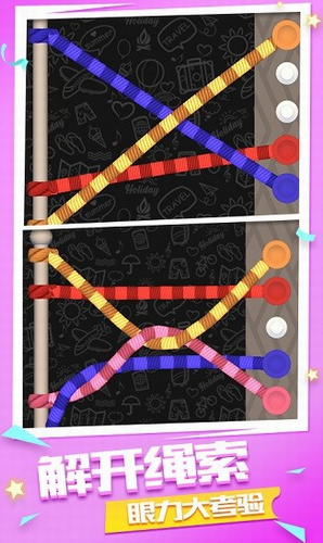 2、好好的挑战一下绳索达人游戏,看看你的观察能力如何,小心的解开它们。