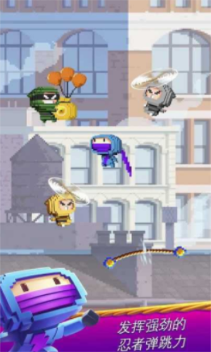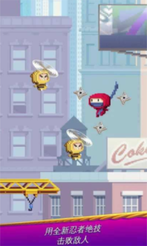 忍者跳起来内购破解版是一款非常好玩有趣的动作冒险游戏。它的玩法模式非常的简单轻松容易上手,在这个游戏中你只需要控制你的忍者进行前行不断的接受挑战,完成任务即可,同时还有更多的趣味玩法,你都可以自由尝试,并且还提供有多种提升攻击力和加速的道具。游戏画面做的还是很精致,很生动的,音乐欢快动听。众多阻挡你前进的障碍和敌人,并且凭借着忍者的高灵活性,玩家可以沿着左右两边的建筑物高速冲刺,喜欢就赶紧下载挑战吧。