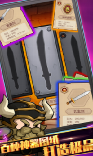 2.不断打怪,开启宝箱或者赢得过关奖励,收集原材料和图纸,打造武器,就这么简单!