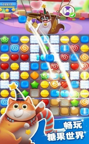 1、可爱的猫咪将带您进入甜蜜的糖果消除乐园。