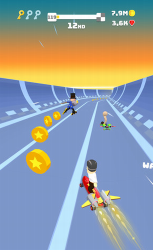 3、驾驶你的独轮战车,尽情的飞驰,超越它们获得比赛的胜利。