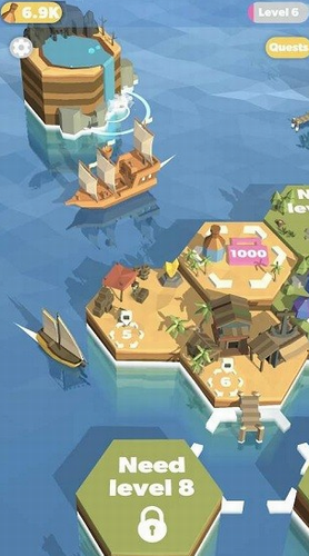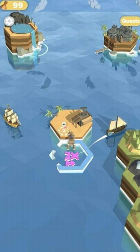 2、探索这个热带世界的新片段。购买新的岛屿。建造建筑物。抓住海盗并找到宝藏。