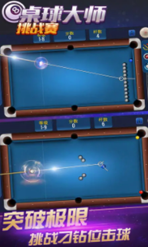 2、在游戏中通过一个又一个的挑战,并成为一名真正的台球大师!