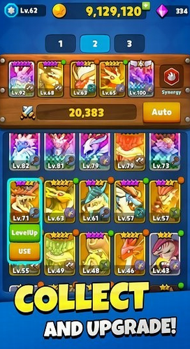 1、70多条史诗巨龙等你来收集培养,收集更多金币来发展你的角色。