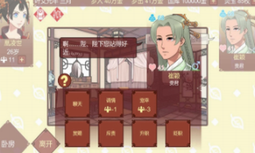1、养成玩法:管理你的后宫,平衡朝堂的各种势力,我们的终极目的是要将自己的皇朝代代相传。