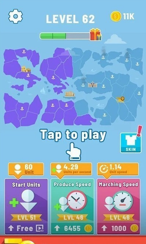 3、拥有金币商店,金币可以通过闯关、离线奖励等方式获得,金币可以用来增加部队数量和速度。