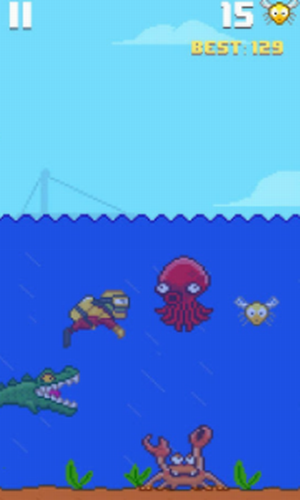 如Flappy Bird一样点一下青蛙就会跳,要跳到云上吃蜜蜂,失足掉落海就死。