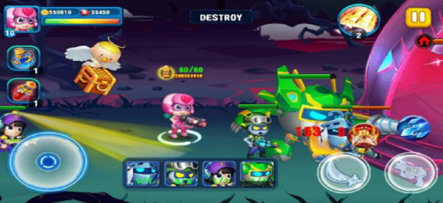 2.卡通的角色英雄设计,合理的搭配不同的武器装备,打击无尽的敌人和隐藏在黑暗中的大BOSS