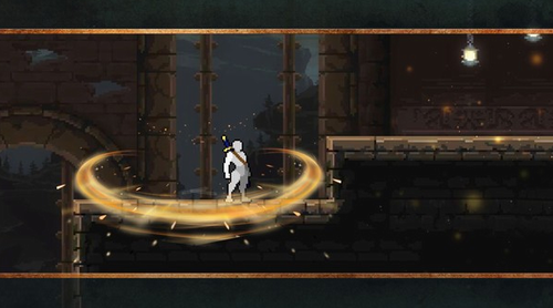 1、遇到怪物的时候你可以用武器攻击它,还能发射飞镖,多种技能手段。