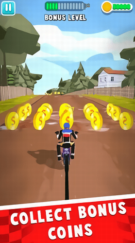 2、在飙车的过程中还可以收集金币,积累足够的金币来购买你喜欢的摩托。