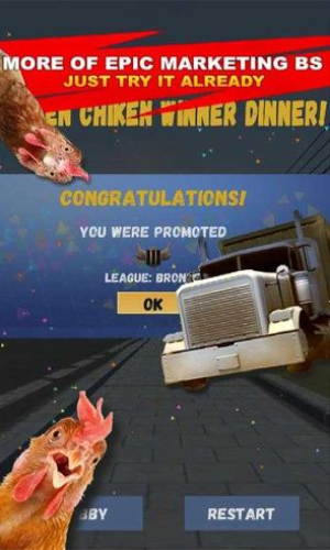 鸡挑战赛穿越马路无限金币版是一款模拟鸡过马路游戏。玩家需要控制一只鸡,要越过尽各种各样的的道路,躲避路上的汽车,游戏玩法简单有趣,带给玩家更多的快乐,超多的道路可以挑战。经典又真实的游戏玩法,加上趣味的过程,给玩家们带来不一样的游戏体验,不断的提高你的技术,考验玩家的灵活操控力和反应力,全新的的游戏内容,满满的乐趣为你轻松呈现,还有不同的鸡等待解锁,不同的鸡有着不同的属性,感兴趣的玩家们就快来下载试玩吧。