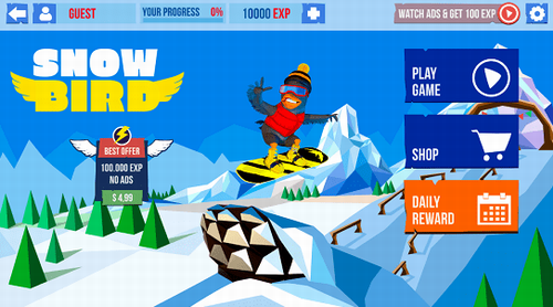 1、雪鸟滑雪板是一款非常有趣的滑雪冒险闯关游戏。