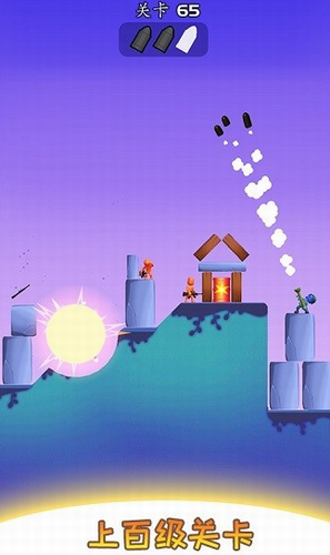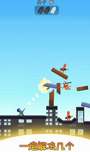 2、十分简单的操作,点击屏幕瞄准,打破一个支点,全部倒塌。