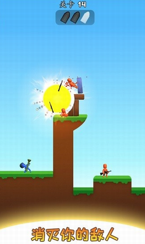 1、派遣敌人飞翔,“火箭筒男孩”爆炸了基地并击碎了建筑物。