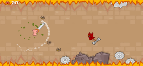 2.你需要利用手中的剑,将前面的障碍都一一斩除,还有火喷火的怪物,要及时的杀掉