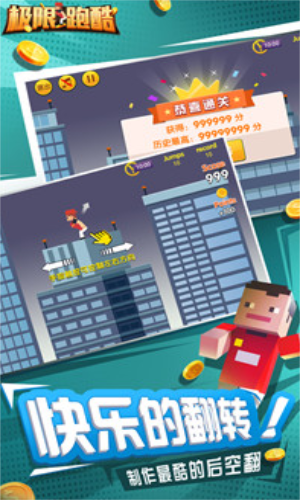 极限跑酷之楼顶空翻无限钻石版是一款动作技巧类的跑酷游戏。乐高风格的人物角色,在楼顶做着各种各样的极限空翻跑酷动作,非常的炫酷刺激。整个游戏都采用卡通动画的风格构造,和游戏人物设计,让游戏中充满了童趣,吸引更多类型的玩家来玩游戏。不断突破前方的障碍,努力去获得更高的分数享受跑酷的乐趣。玩家可以在楼顶做出各种各样不同的酷炫姿势,姿势越难,最后得到的分数就会越高,,做出最酷的后空翻躲避各种障碍物,确保自己可以安全落地,感兴趣的小伙伴赶快下载游戏展开自己的跑酷之旅吧。