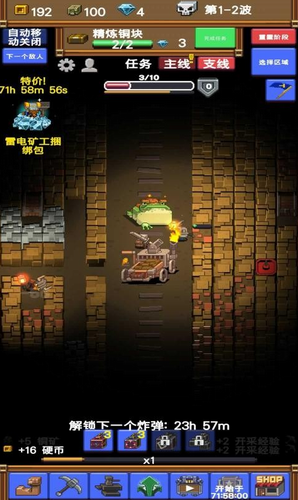 1、你可以招募到更多的矿工来战斗,并且升级你的角色收集各种装备。