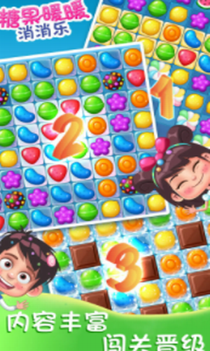 每一个关卡都有着对应的主题,不同的消除组合让你畅爽体验糖果消除的乐趣,暖心的游戏音乐,轻松的游戏氛围,体验最具创意的消除乐趣,互动性超强,可以联机和你的朋友对抗,看看谁的消除能力更加的强悍吧!