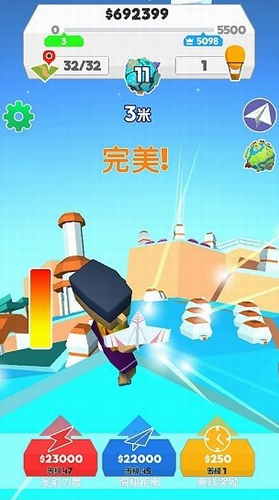 3、力度越精准,纸飞机飞得越远,距离越远,金币获得越多。