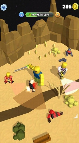 1、挥舞你的角色手中的武器去击败其他的对手吧,但是要小心别被你的敌人击中了。
