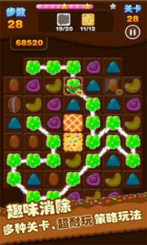 3.连线消除的糖果越多,获得的分数就会越多