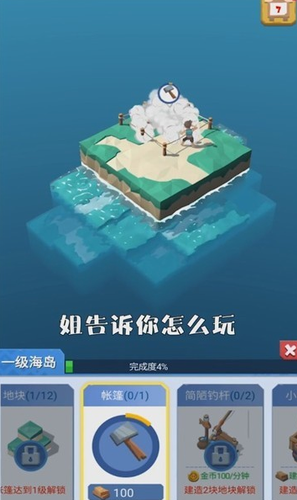 3、游戏的玩法是非常自由的,玩家可以根据自己的喜好发挥想象力,完成小岛的建造,感受最有趣的游戏体验。