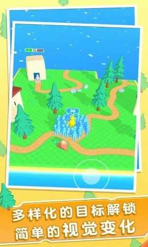 小岛人群是一款非常好玩的休闲益智类手机游戏,游戏画风简约,画面色彩看起来丰富无比,在这里玩家需要找到与你相同颜色的小人,共同组成一个庞大的人群,并与其他颜色的小人展开战斗,打败他们即可继续前进,与人群一起建造你的岛屿!巨大的游戏世界玩家可以自由进行多种探索和橡皮人的收集,还有超多隐藏玩法期待大家的解锁发现,快来自己感受一下吧!