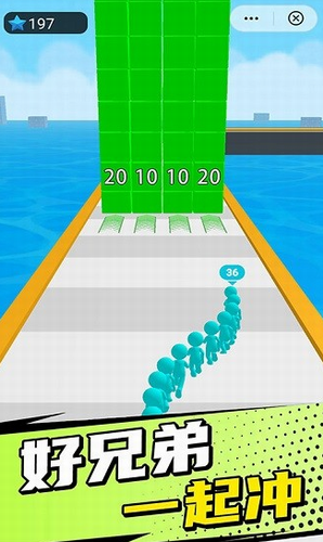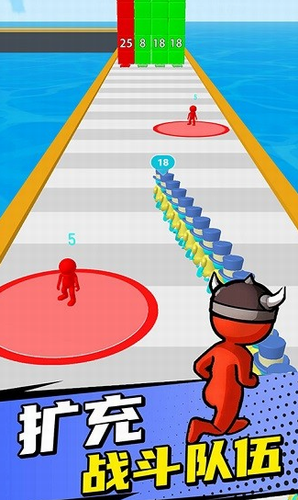 1、玩家操控主角躲避障碍,通过积累战斗人数获得胜利。