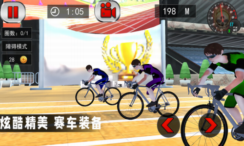 在游戏内开始一场场的自行车骑行比赛,通过点击屏幕之中的加速以及减速按键来平稳的控制自己的角色,