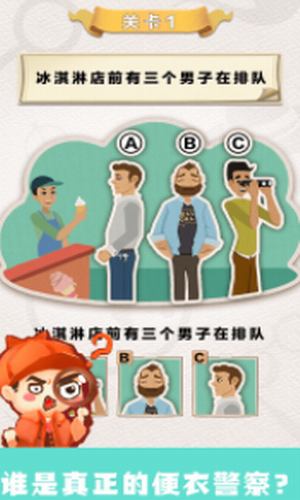 聪明大侦探是一款挑战闯关很丰富的休闲游戏,在这里人人都将化身为福尔摩斯,凭借自己对各个细节之处的观察,成功找到最终的真相,非常新奇的题目设计,答案可能往往超乎你的想象,而经过不断的挑战能够让你的经验越来越丰富,面对各种挑战可能更加的轻松,操作上特别的简单!