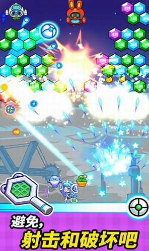 3、灵活的控制射击的方向,命中道具获得分裂技能,消除更多方块。