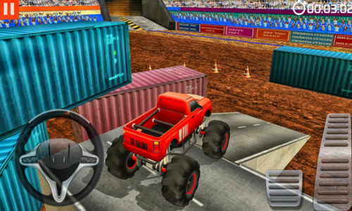 3.驾驶怪物卡车参加比赛,并在越野停车道上,展示怪物卡车停车的技巧。