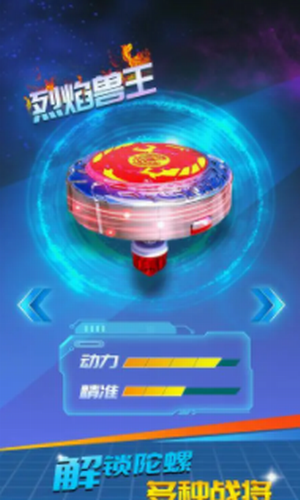 1、战斗是通过自己陀螺不断的转速打击来击败挑战不同的对手,取得最终的胜利。